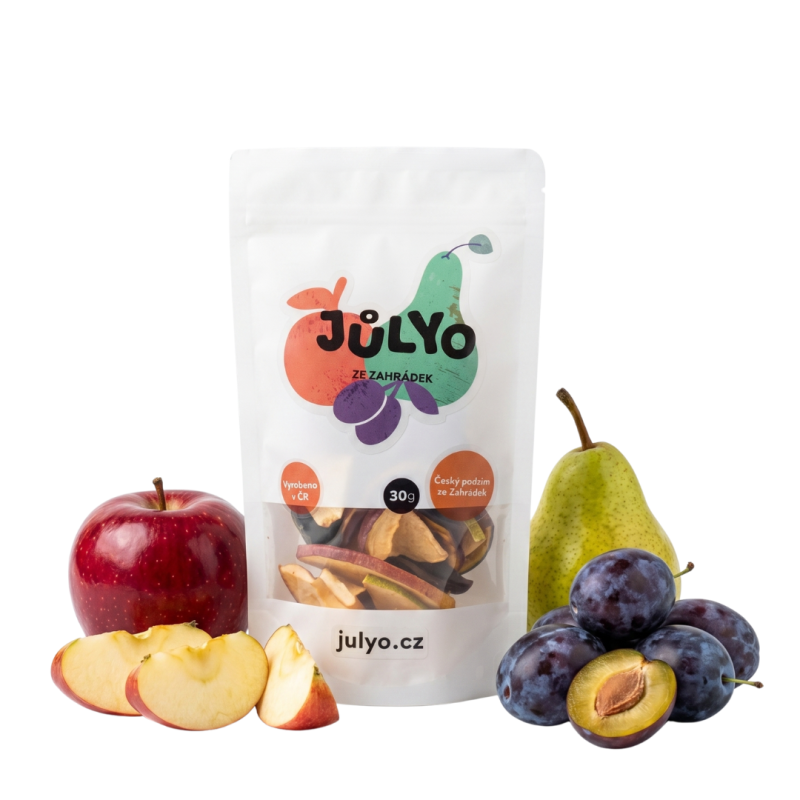 100% lyofilizovaná jablka, hrušky a švestky