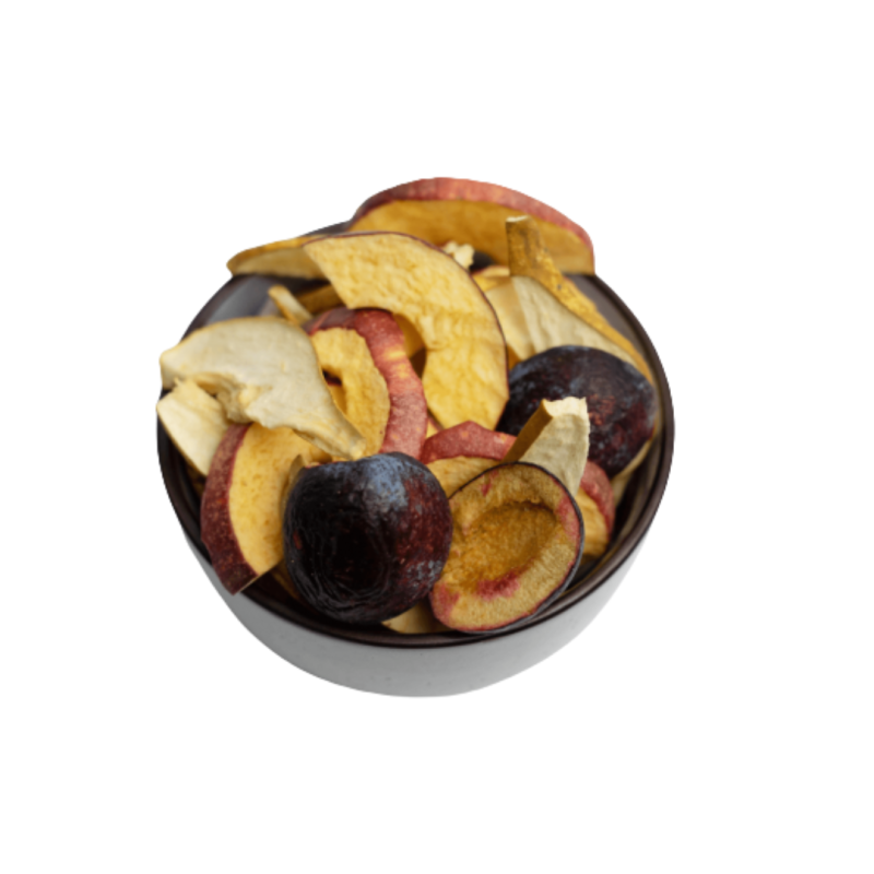 Představte si vůni spadaných jablek, sladkost zralých hrušek a chuť podzimních švestek. Přesně tak chutná náš mix Podzim ze Z(z)ahrádek – tři druhy ovoce sušené mrazem, každý se svou vlastní osobností, a přitom krásně ladí dohromady.