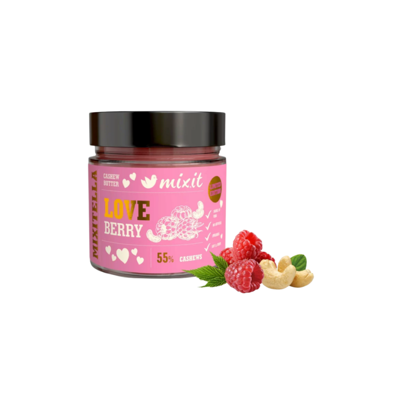 Láska má novou příchuť a je to velká romantika. Všechno to začalo u našich Crème boulí. Výsledkem je Valentýnská Mixitella – jemný kešu krém s hebkým mandlovým krémem, pravou vanilkou a prachem z lyofilizovaných malin. Kombinace tak neuvěřitelně jemná a svůdná, že se do ní zamilujete i vy. Ať už jí plánujete obdarovat svou drahou polovičku, nebo si chcete udělat sladkého Valentýna jen sami pro sebe. Mixitella je přirozeně sladká, sametová a plná vybraných surovin přesně tak, jak to u nás znáte. Bez palmového oleje, zato s pořádnou dávkou malinové lásky. Skvěle se hodí do kaše, na lívance, na dezerty… nebo rovnou na lžíci.